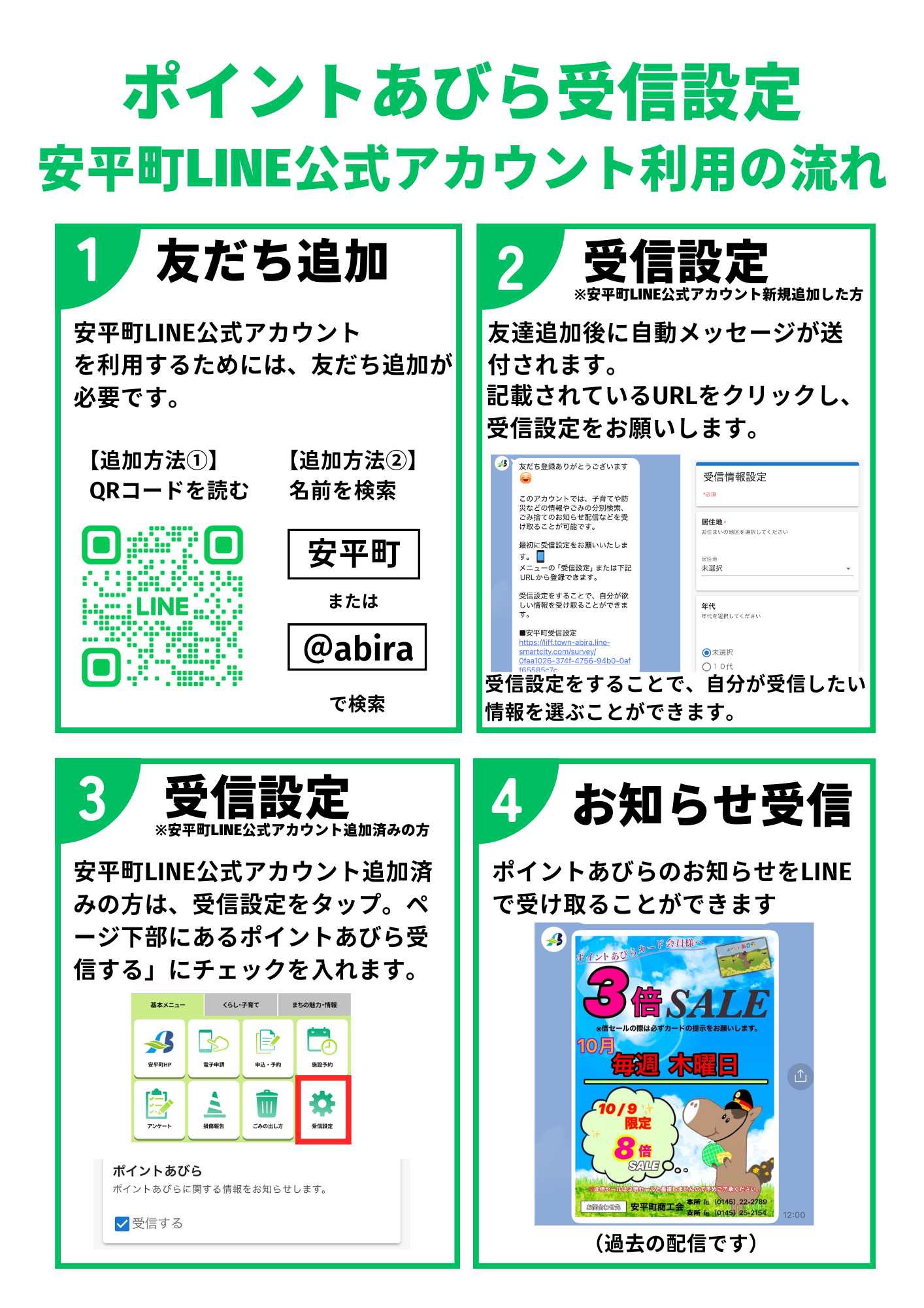 また、安平町LINE公式アカウントからキャンペーン情報を配信しています。本ページ下部にある「キャンペーン情報について」に記載されている「受信設定」が必要です。この機会にぜひご利用ください。