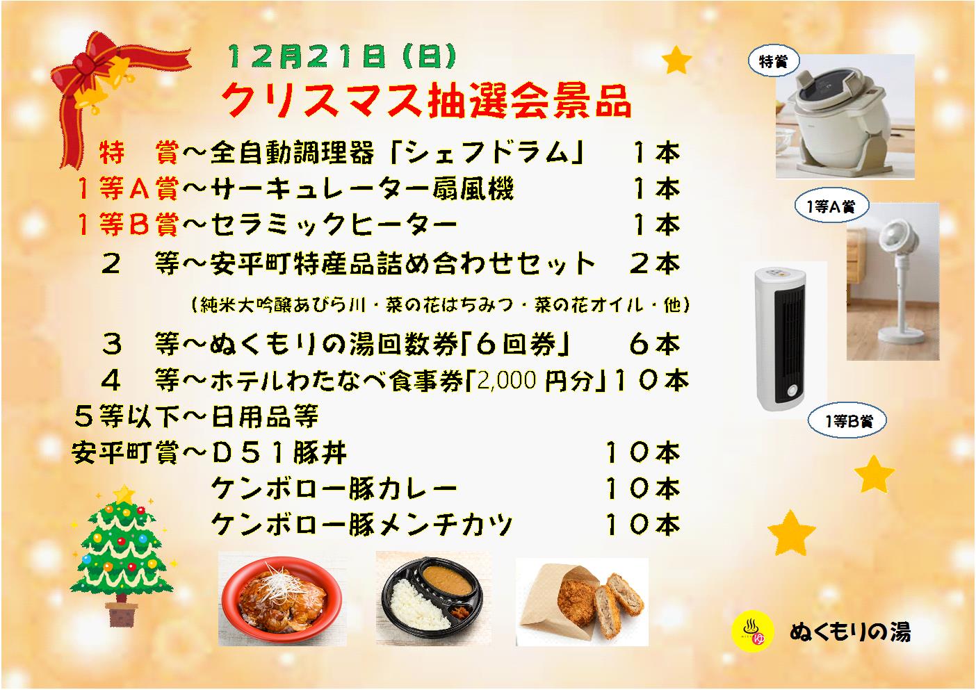※景品の詳細については別添「クリスマス抽選会景品」をご覧ください。